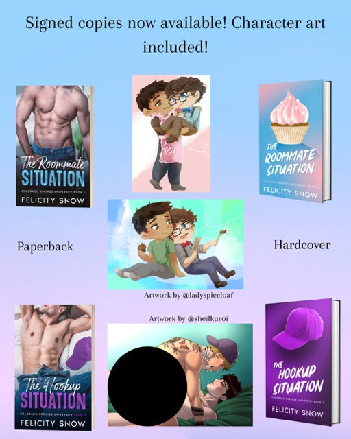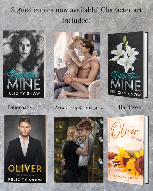 You can also get signed copies and character art on my website, a few of which are pictured below: https://payhip.com/FelicitySnowAuthormerchandise
